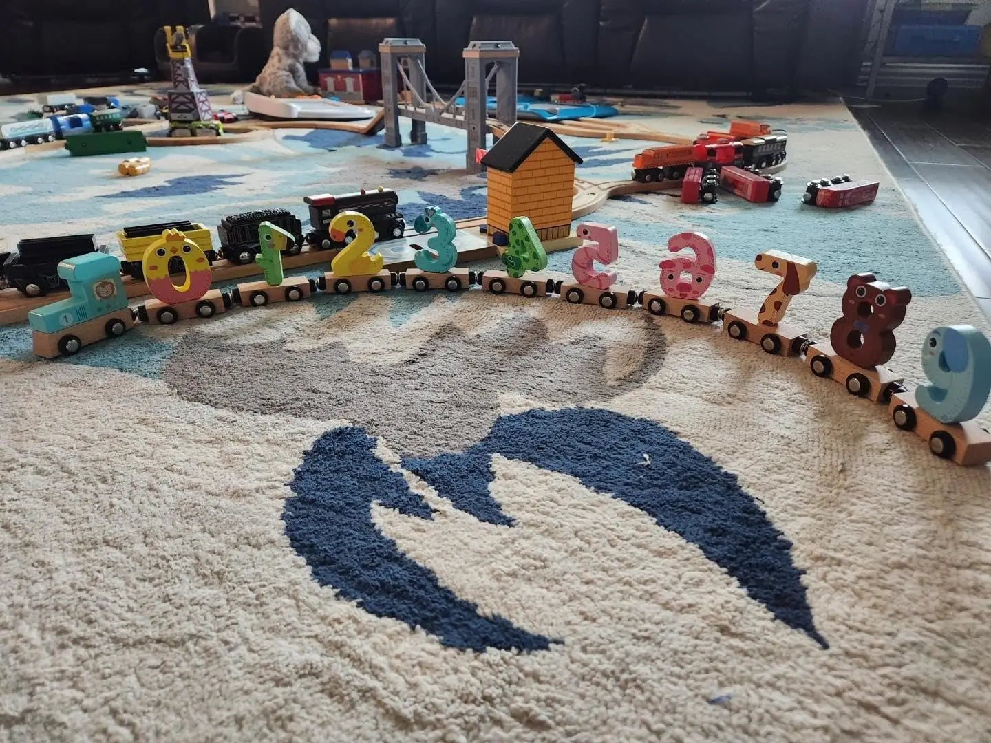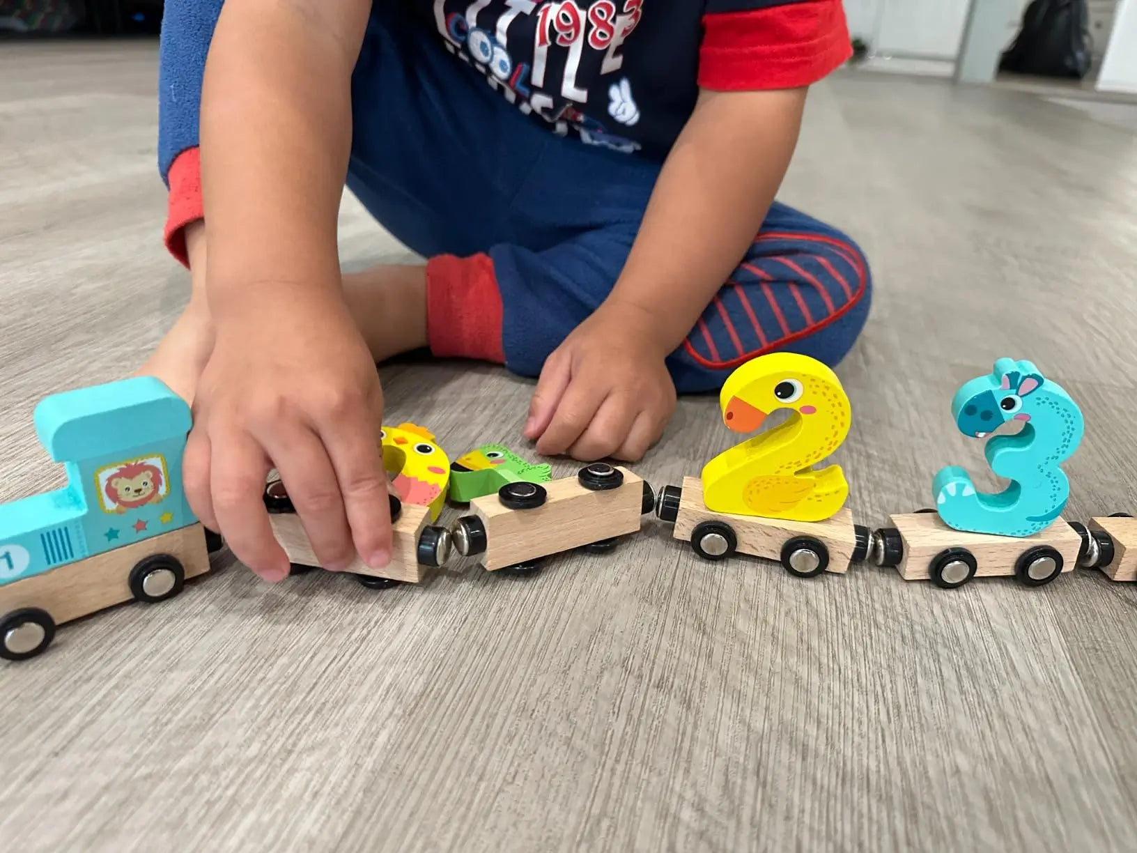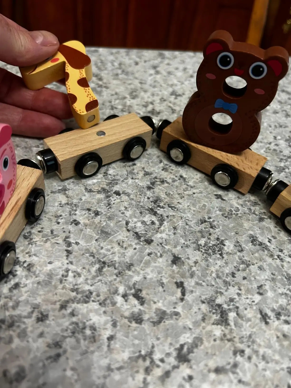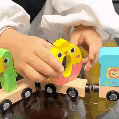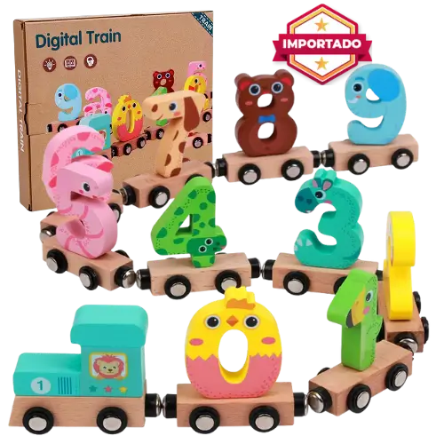 Nuestro KeeyGotren® magnético educativo fabricado en madera natural de alta calidad con 21 piezas que incluyen una locomotora y vagones numerados del 0 al 9. Cada vagón presenta ilustraciones coloridas de animales y se conecta mediante imanes seguros integrados. Diseñado bajo principios Montessori para el desarrollo cognitivo temprano, coordinación mano-ojo y reconocimiento numérico y lo mejor olvidando el caos que es el aprendizaje común!